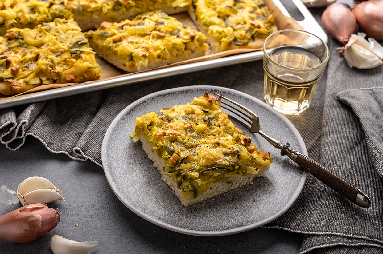 Ein herzhafter Blechkuchen mit Räuchertofu.