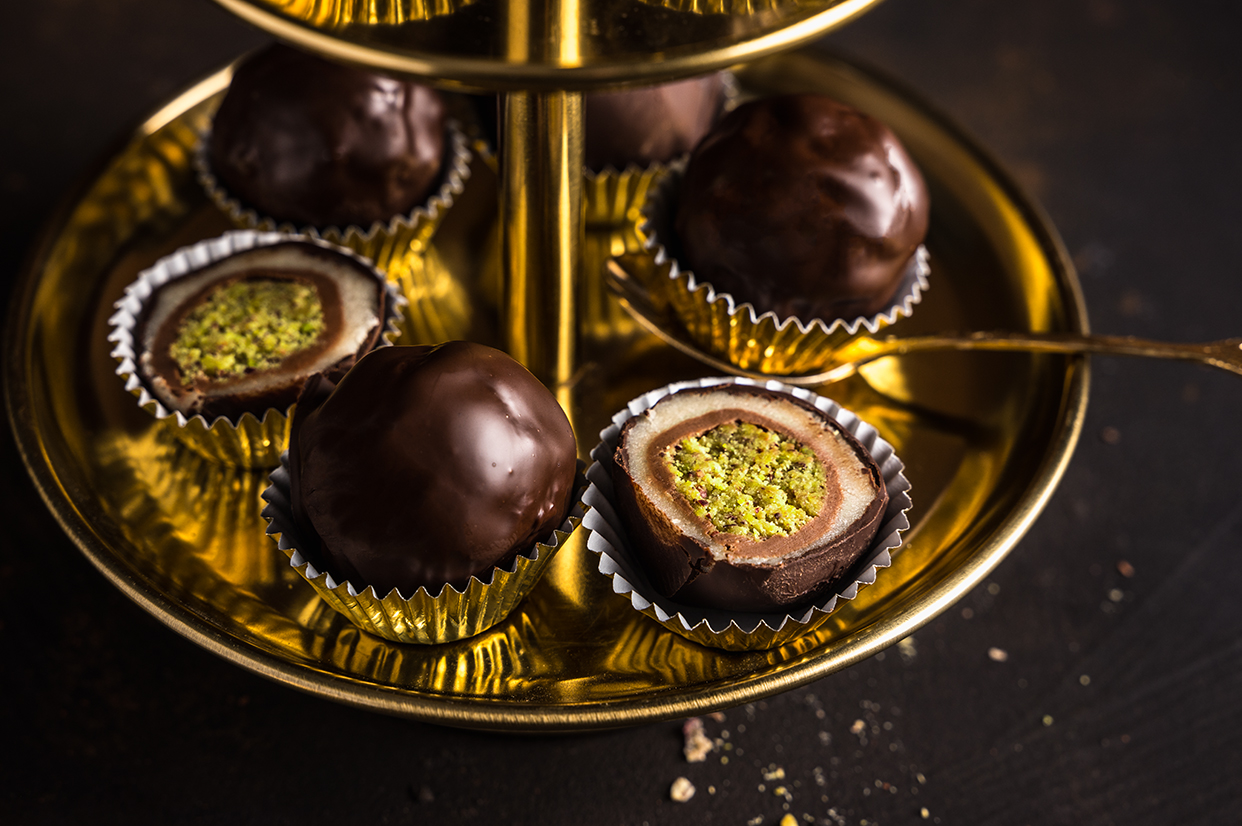 Das beliebte Konfekt aus Pistazien, Nougat, Marzipan und Schokolade.